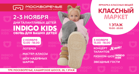 2-3 ноября «Дни талантливых детей» INDIGO KIDS в ТРК «Москворечье»: шоу талантов, звездные гости, концерт и подарки для всей семьи!!