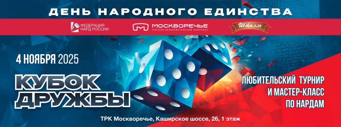 4 ноября в ТРК «Москворечье» ТУРНИР ПО НАРДАМ «Кубок дружбы»!