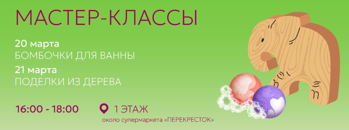Приглашаем маленьких творцов на мастер-классы в ТРК «Москворечье»! Мы будем создавать «Бомбочки для ванны» и делать «Поделки из дерева».