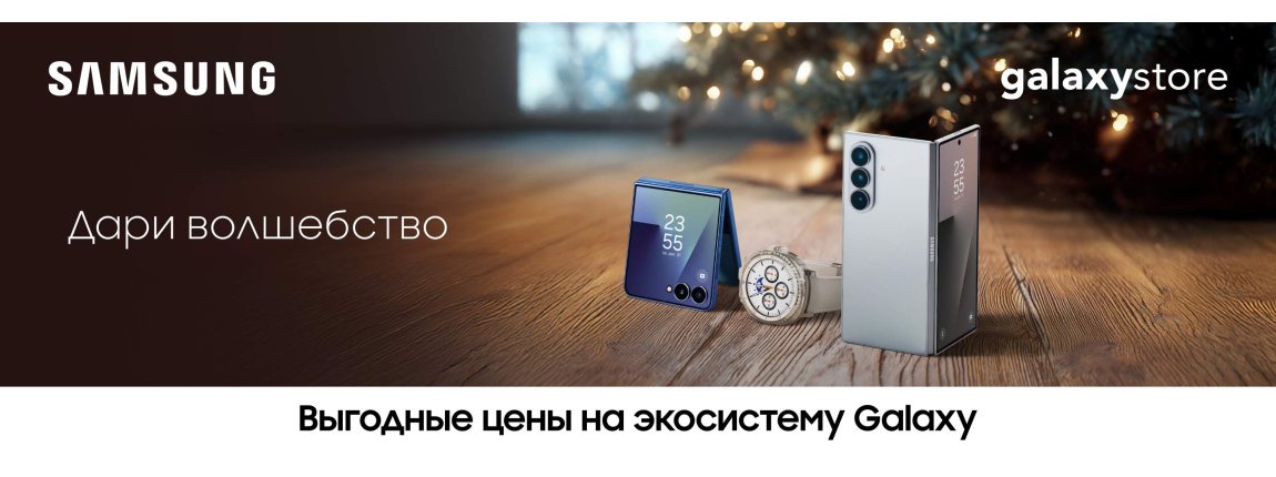 До 12 января 2026 года в фирменном магазине Samsung действуют выгодные предложения на весь ассортимент товаров. Телевизоры, смартфоны, планшеты, умные часы, наушники и аксессуары можно приобрести со скидками до 23%.