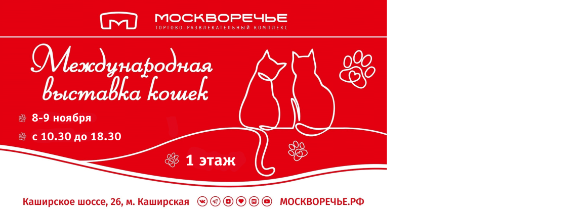 Не упустите шанс окунуться в мир кошек и завести новых пушистых друзей! Ждем вас 8 и 9 ноября на ЮБИЛЕЙНОЙ выставке кошек на 1 этаже ТРК «Москворечье»!